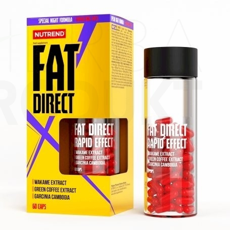 Unikátní spalovač, který v sobě kombinuje sílu přírodních výtažků a nejnovějších technologií. Je jedinečný nejen svým složením, ale i dobou použití. FatDirect je totiž prvním nočním spalovačem od NUTRENDU. Je speciálně vyvinut k odbourávání tuků ve spánku. Receptura obsahuje výtažky z mořských řas wakame, ale i z garcinie cambogie a ze zelené kávy. Produkt FatDirect neobsahuje povzbuzující látky a je určen k večernímu užití - stačí 1 kapsle 30 minut před spánkem.